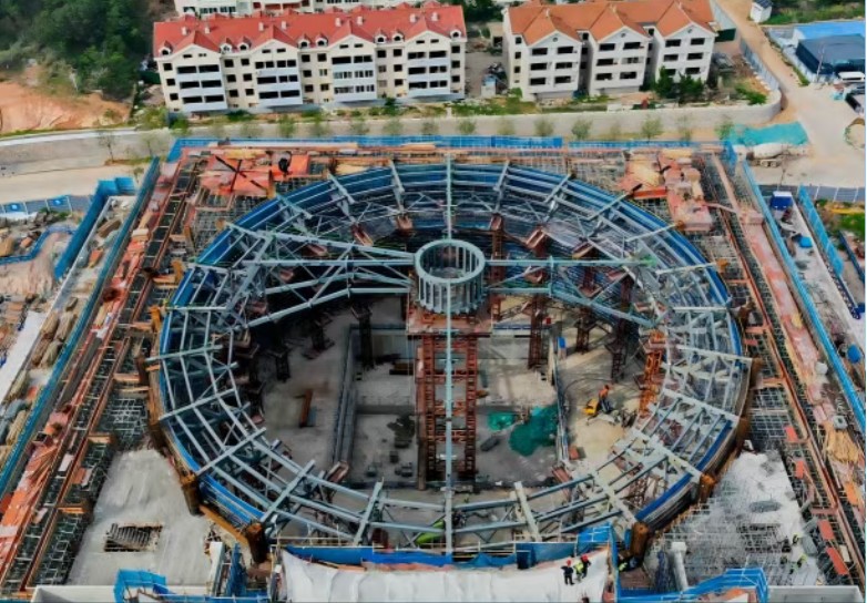 به عنوان ساختار باربر هسته تئاتر، نصب تیر خرپایی مدور اولویت اصلی این سازه است. این خرپا دارای دهانه وسیع و وزن زیادی است، در طول فرآیند، فرآیند شامل غلبه بر چالشهای متعدد، مانند عملیات در ارتفاع بالا و تراز دقیق، تجهیزات بالابر بزرگ برای اطمینان از دقت موقعیتیابی در سطح میلیمتری استفاده شد. این دقت پشتیبانی پایدار برای ساختار سقف تئاتر فراهم می کرد.